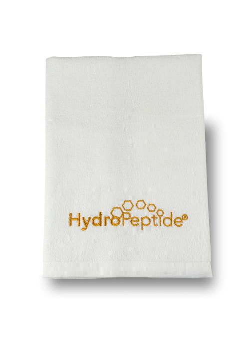 TOWEL HYDROPEPTIDE SMALL, WHITE WITH GOLDEN LOGO