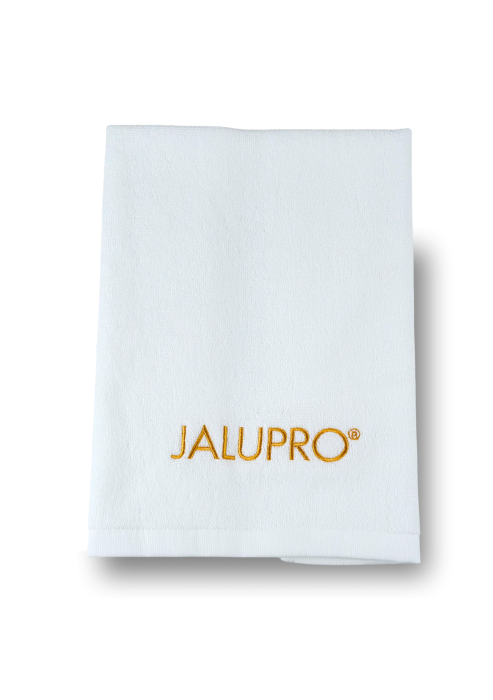 TOWEL JALUPRO SMALL, WHITE WITH GOLDEN LOGO