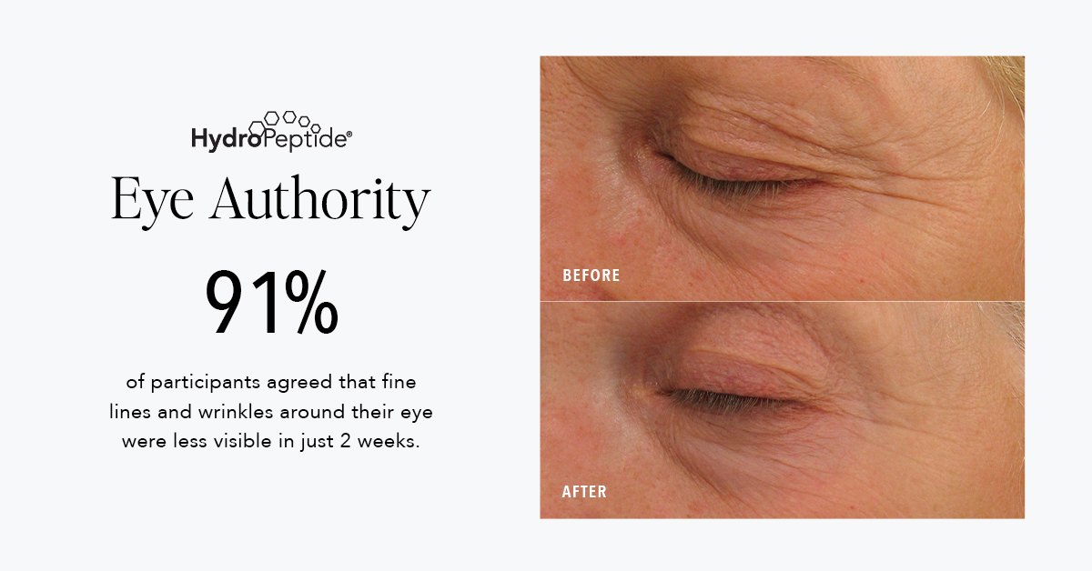 Pokožka v okolí očí je najjemnejšia a najcitlivejšia, preto si zaslúži výnimočnú, cielene vyvinutú starostlivosť. HydroPeptide Eye Authority je očný krém novej generácie, ktorý vďaka inovatívnej kombinácii perlového prášku, vysoko účinných peptidov a silných antioxidantov okamžite rozjasňuje a spevňuje očné okolie, pričom dlhodobo bojuje proti všetkým hlavným príznakom starnutia.