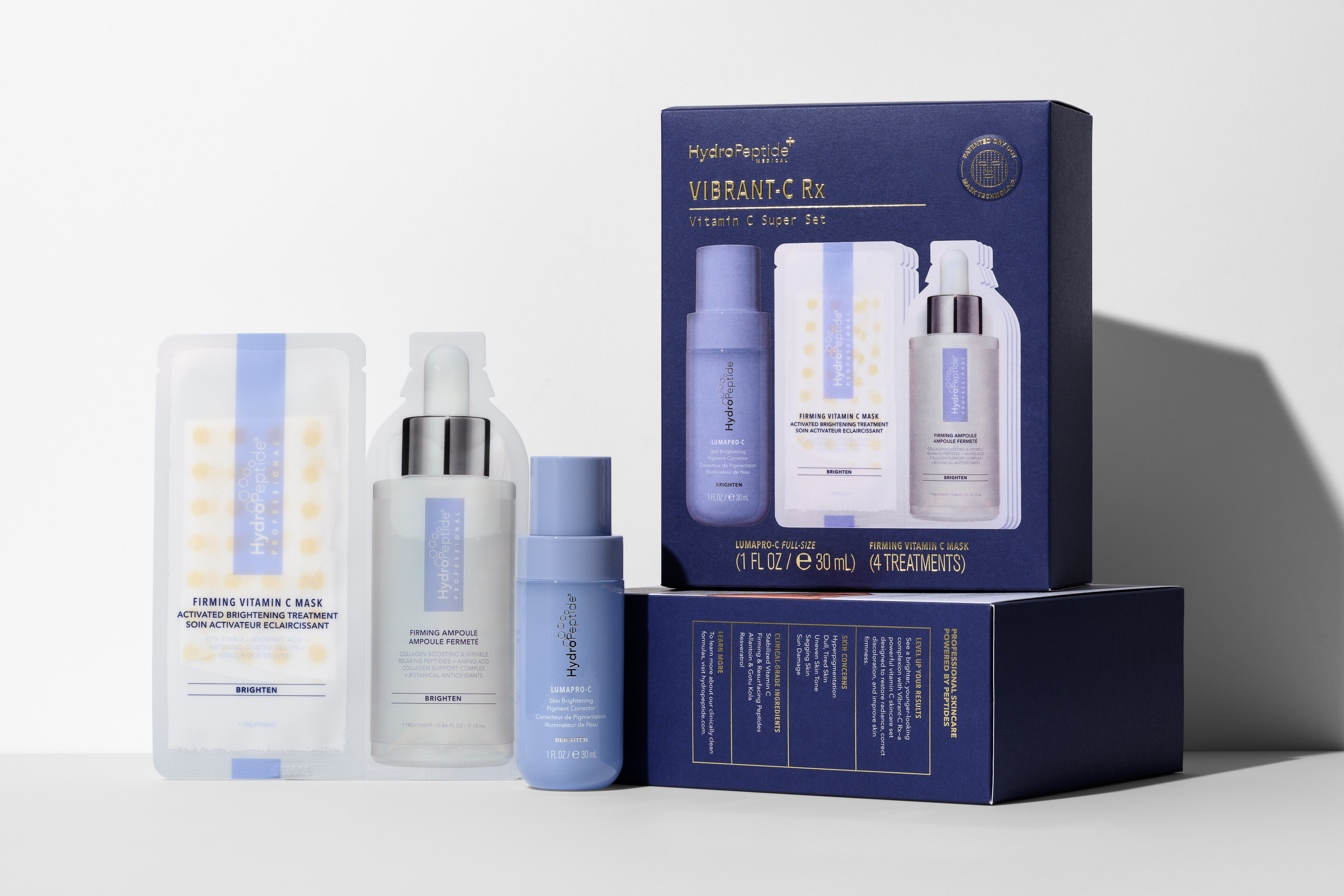 Exkluzívny „Vitamin C Super Set“ určený pre lekársky estetický trh. Kombinuje dve kľúčové ošetrujúce zložky – koncentrovanú Vitamin C masku a korektor pigmentu LumaPro-C, ktoré synergicky zosvetľujú pleť, redukujú hyperpigmentácie a zlepšujú jas pokožky.