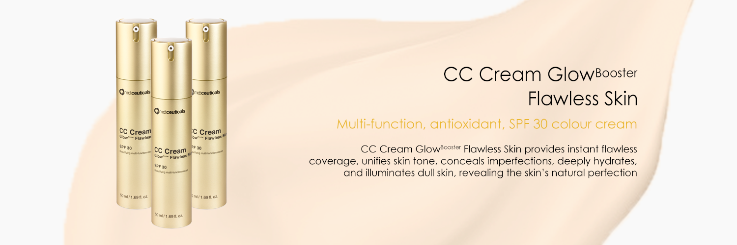 CC Cream GlowBooster Flawless Skin od md:ceuticals poskytuje okamžité bezchybné krytie, zjednocuje tón pleti, zakrýva nedokonalosti, hĺbkovo hydratuje a rozjasňuje mdlú pleť, čím odhaľuje prirodzenú dokonalosť pleti. V jedinom kroku tento multifunkčný krém vyživuje, chráni, koriguje nedokonalosti a redukuje jemné linky a vrásky, čím zvyšuje žiarivosť pleti.