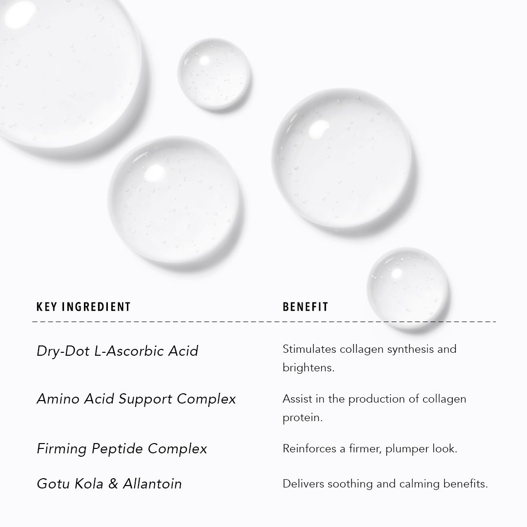 Obsahuje kapsulovaný vitamín C, trojitý peptidový komplex, kyselinu hyalúronovú a výťažky z Centella Asiatica (Gotu Kola). Hlbkovo hydratuje, rozžiaruje pleť, podporuje tvorbu kolagénu a elastínu. Prevenčne zabraňuje tvorbe pigmentových škvŕn.